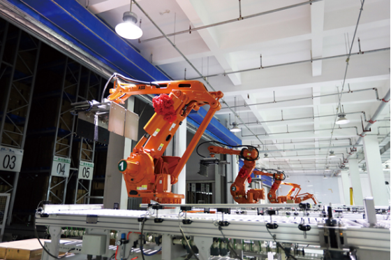去年启用的新时代健康产业园,总投资约 16 亿元,按照现代化、国际化标准建造,年综合产能可达300亿元。记者通过参观走廊看到,车间内保健食品生产线和日化产品生产线有序运转,只有少数身穿洁净连体服的技术工人在巡视;鱼贯而出的整箱产品被传送到物流中心,搬运的活儿由码垛机器人搞定。显然,“智造”已颠覆了轻工生产的传统面貌。