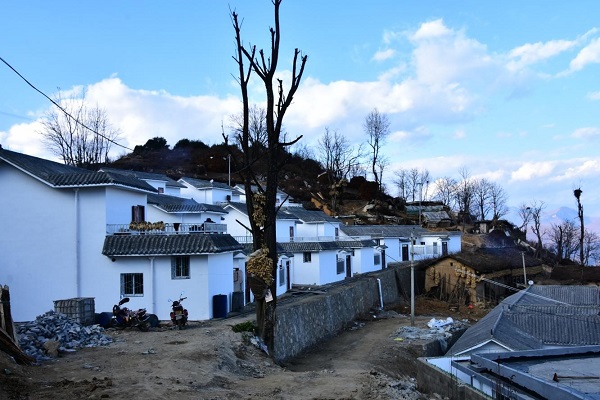 为了能让贫困群众都能住上安全住房,杜光远和其他驻村工作队员到村里以后,多次上门挨家挨户动员百姓建新房。在调研中了解到,像阿色木日这样的家庭,古恩村还有7户。脱贫路上,尽力不能让一户百姓掉队!杜光远迅速向华电金上公司汇报,在与地方政府协商一致的基础上,由华电金上公司出资30万元,聘请建房师傅带领这些贫困群众一起建起了彝家新寨。就这样,政府出大头、公司帮一把、群众齐出力,2019年11月彝族新年前夕,新房落成了,阿色木日终于搬进了新房。