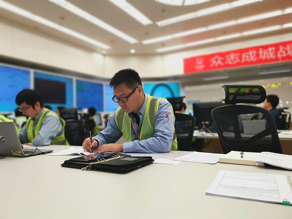 说起调试工作,有着近十年的核电机组调试经历的宋雨蒙说:“机组调试,就是发现问题、解决问题,向生产机组做好经验反馈,防止问题重复发生的过程。” 反应堆保护系统是核电站重要的安全系统,华龙一号反应堆保护系统采用了新型DCS平台,缺少实践经验。宋雨蒙顶住压力,带领团队创新提出反应堆保护系统保守投运方案,通过释放保护信号与重大、易损设备“双重”隔离相结合的方式,既达到验证系统可靠性的目的,又将后果控制在可接受的范围内,通过这一做法可全面检验反应堆保护系统潜在缺陷。