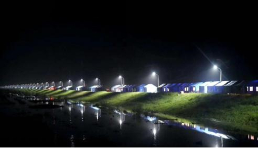 江西上饶鄱阳县问桂道圩堤决口,国网江西鄱阳县供电公司紧急为重要站点安装照明设备。