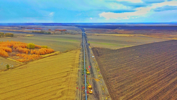 图为中俄东线(吉林长岭-河北永清)建设场景