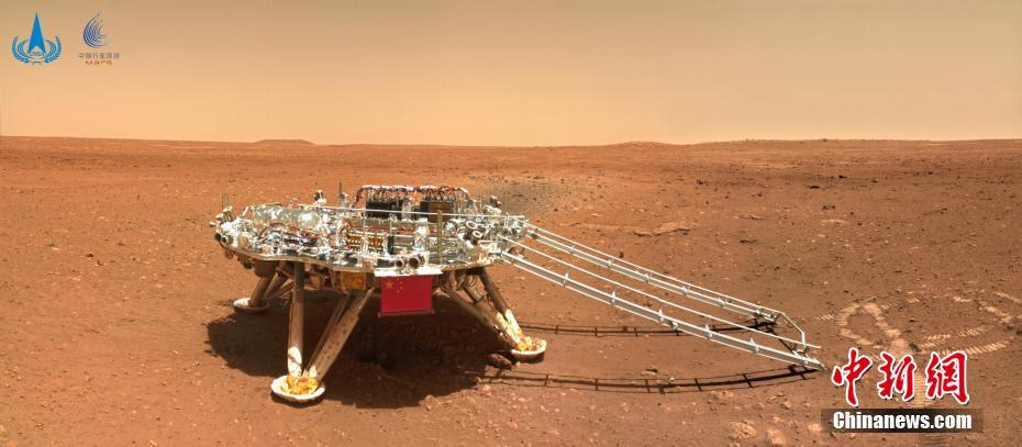 2021年6月11日,国家航天局公布由“祝融号”火星车拍摄的着陆点全景、火星地形地貌、“中国印迹”和“着巡合影”等影像图。