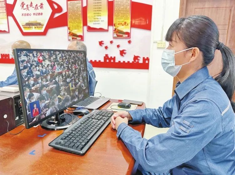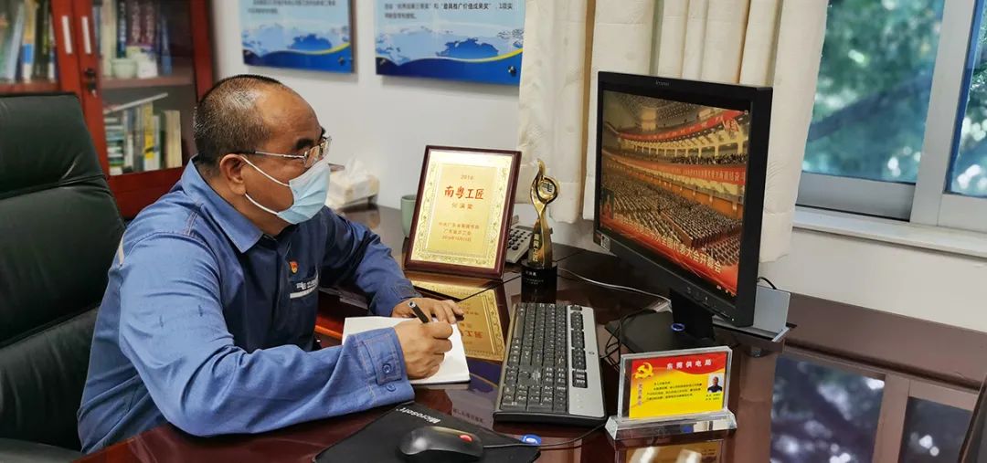 全国劳动模范、南方电网广东东莞供电局检修班副班长何满棠收听收看党的二十大开幕会