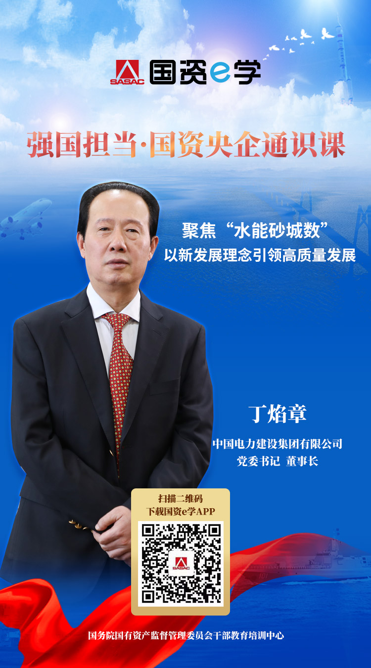 《强国担当 国资央企通识课》之《聚焦“水能砂城数”,以新发展理念引领高质量发展》共分为五个篇章,由中国电力建设集团有限公司党委书记、董事长丁焰章作为主讲人,从服务国家战略、推动改革发展、践行央企担当等方面,讲述了中国电建自新中国成立以来,在党中央、国务院国资委的正确领导下,立足产业报国,传承红色基因,为我国能源电力事业做出了重要贡献,为服务国家经济社会发展,参与全球能源治理,加快构建人类命运共同体贡献电建方案和电建力量的生动故事。