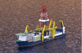 【成果简介】 中国船舶集团第七〇八研究所开发的新一代超深水钻井船,最大作业水深为3660米,最大钻井深度15250米,最大可变载荷28000吨,配置2×1250短吨的双井架钻机和2套7闸板20kPSI防喷器组,配备DP-3闭环电网动力定位系统,与国际先进的第七代超深水钻井船方案技术指标相当。该船在国内首次应用了桁架式双井架与单层卷筒绞车相结合的钻机解决方案,兼具作业效率高和便于维护保养的特点。通过对主尺度、船型、月池及改善措施等进行水动力性能优化,可适应恶劣海况作业需求。该型超深水钻井船技术文件已通过中国船级社的审查认可,具备工程接单条件。