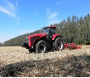 【成果简介】 东方红-LW3204 轮式拖拉机整机采用排放达非道路国三/国四环保柴油机、电液控制无级变速传动系、闭心负荷传感电控液压提升系统、电液控制PTO、采用自主研发的组合数字仪表及性能监视系统、带多功能扶手操纵台的豪华舒适型驾驶室,车速涵盖-25~0~40km/h,变速箱具有三种车速控制模式,发动机具有两种工作模式,冷却系统可根据发动机散热需求自动调节。整机具有结构紧凑、技术密集、自动化程度高,各系统控制精准、操纵简便,适应复杂多变工况,作业高效、节能、环保等优势。东方红-LW3204 轮式拖拉机为旱地农业一般用途,特别适用于大型农场的耕、耙、复式作业等重负荷作业,主要用于我国东北、内蒙古、新疆等以及其他国内外大型农场作业。
