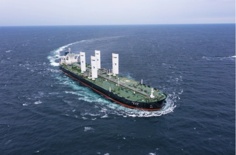 风帆助推VLCC是中国船舶所属大连造船建造的配备第二代风帆装置的新一代节能环保型超大型原油船。该船能够根据航行环境、运动状态等实时数据,自动在线调整控制策略,使风帆自动寻优,达到智能化精细控制,有效提升翼型风帆助推效率,增强船舶在风浪中的航行性能,平均节约燃油消耗超过9.8%。