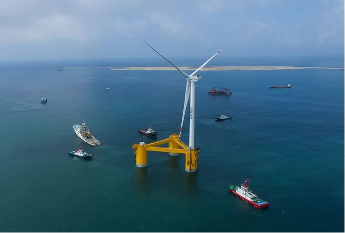 中国船舶所属海装风电设计的“扶摇号”浮式风电装备是国内首台深远海浮式风电装备,具有环境适应性强、一体化设计等优势,该装备拥有核心发明专利10项,可适用于水深超过50米的深远海域,能抵御海洋极端环境,每年可为上万户家庭提供清洁电力,是我国进军深远海能源开发领域的一大“利器”。