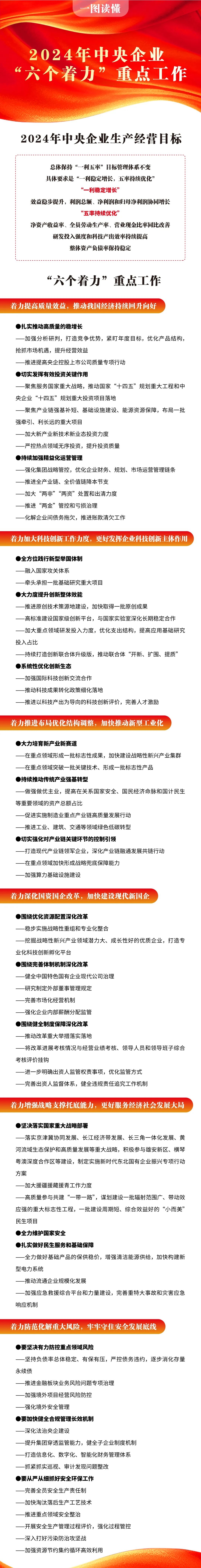 一图读懂2024年中央企业“六个着力”重点工作