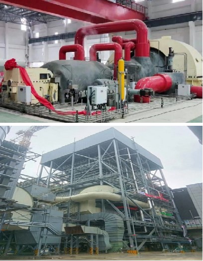 该项目为超临界、一次中间再热、两缸单排汽、凝汽式汽轮机,进汽参数达到24.2MPa、600℃,是世界上首台将超临界蒸汽参数应用到300MW以下的中小汽轮机,代表着小型汽轮机市场高参数、小型化的最新发展趋势。该项目针对燃料热值低且波动范围大的特点,同时需要实现超临界压力下主、再热蒸汽温度达到605/603℃,攻克了燃用低热值气体燃料高参数锅炉一系列关键技术,自主研发出高效超临界锅炉。提出低热值气体燃料高效超临界锅炉整体设计方案,整合塔式锅炉和π型锅炉的优点,通过攻克炉膛选型设计、高效稳定低NOx燃烧系统等关键技术, 开发出塔式背靠背锅炉,保证了锅炉的长期安全、高效运行。