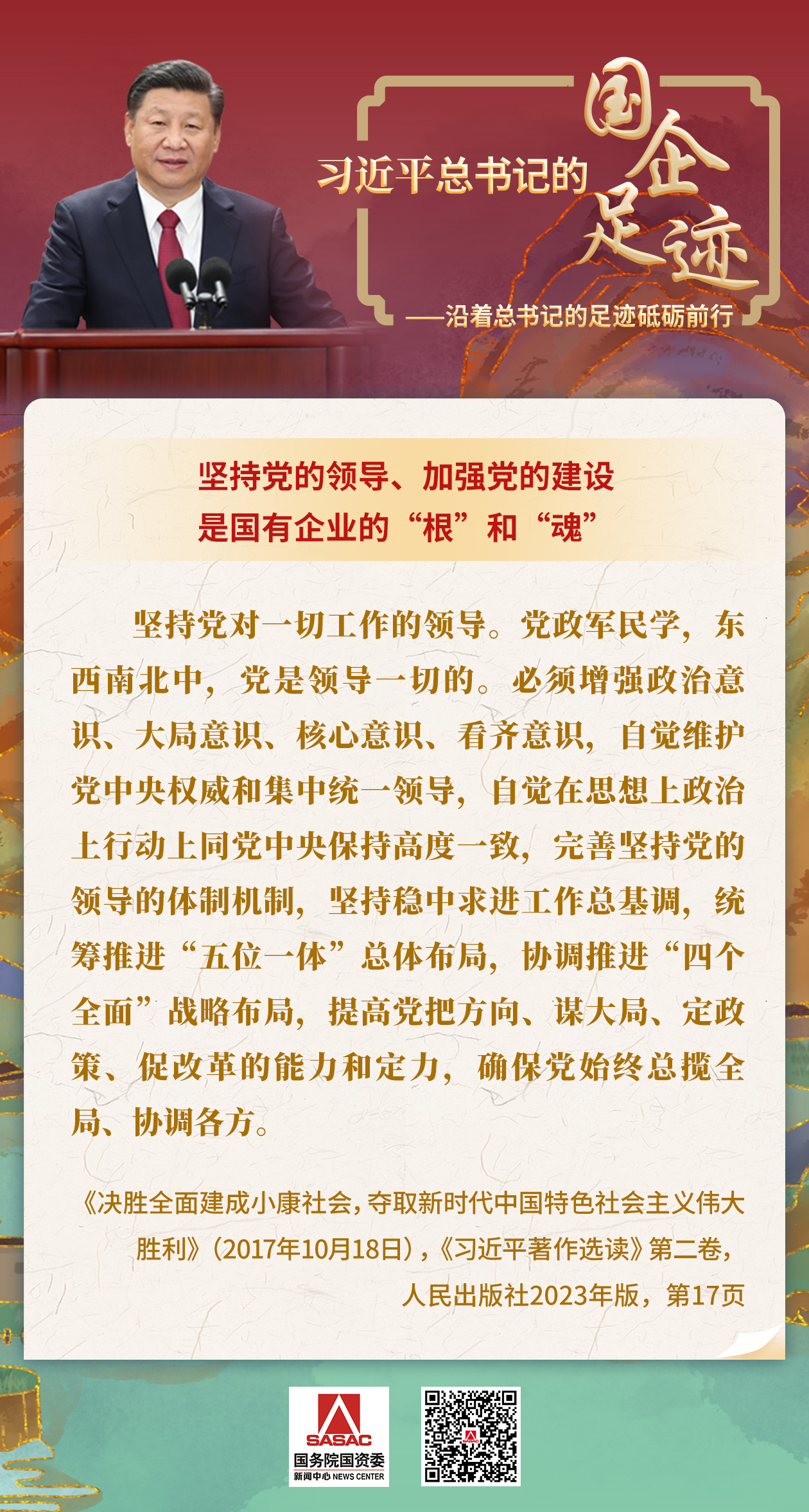 新中国成立75周年之际,国务院国资委网站推出了《习近平总书记的国企足迹—学习要义》系列专题海报,指导国资国企深入学习、理解、掌握习近平同志关于发展国有经济的论述,自觉用习近平新时代中国特色社会主义思想武装头脑、指导实践、推动工作。