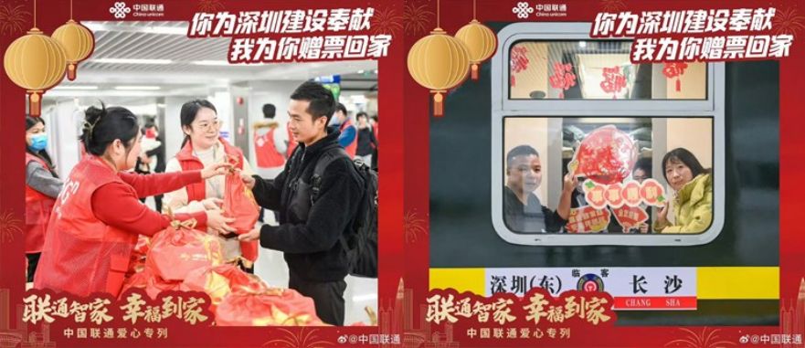 爱心公益活动。2024年春运期间,“联通智家”联合铁路12306在湖南省和深圳市开展“幸福到家”爱心专列活动,帮助1000名粤港澳大湾区建设者等身处异地的务工人员带着满满的幸福和温暖回到亲人身边。为了让银发群体也能享受数字生活的便利与幸福,“联通智家”持续举办智慧助老课堂,利用广泛分布的营业厅为老年用户开设专题讲座,介绍家庭网络和智能设备使用方法。