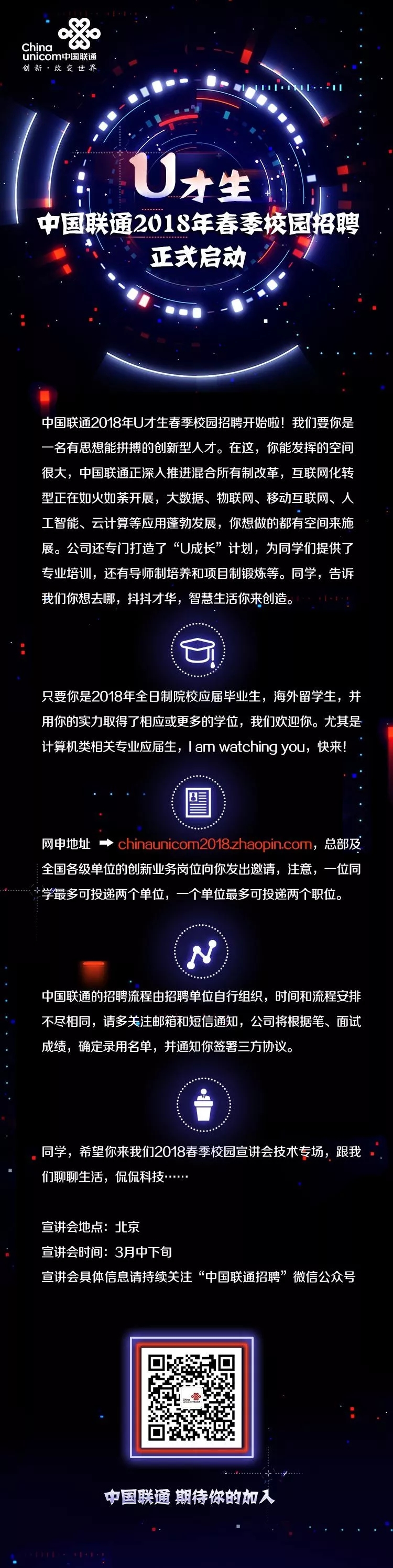 校招地址:http://chinaunicom2018.zhaopin.com/