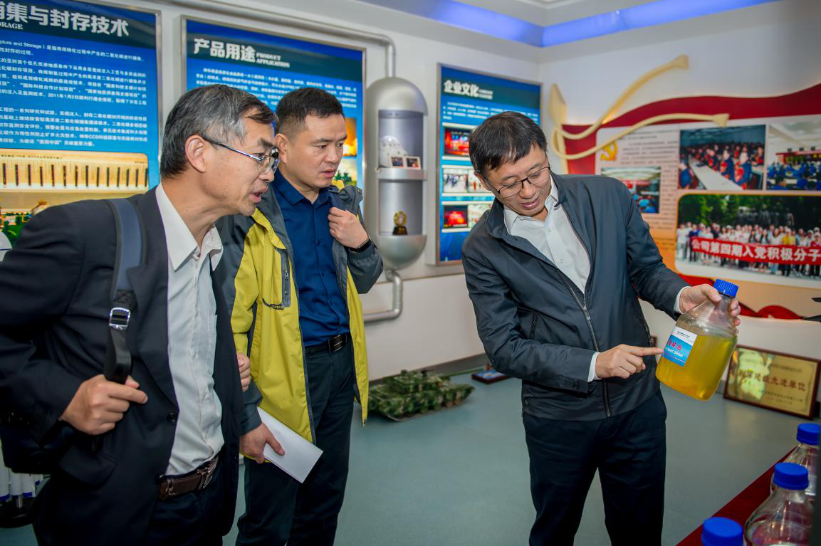 国家能源集团煤制油化工公司党委副书记、总经理闫国春向媒体记者介绍煤直接液化产品